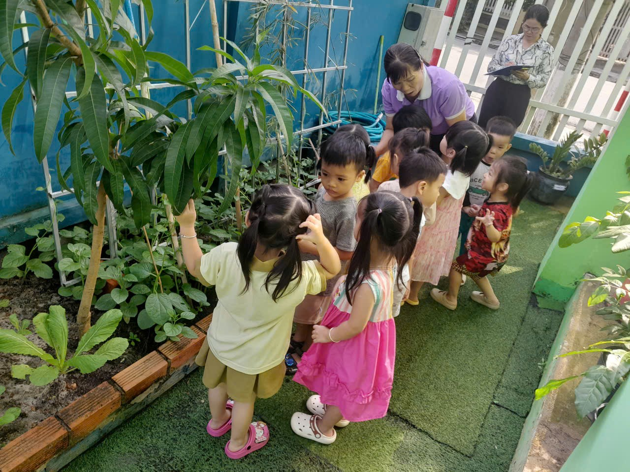 CÁC BÉ LỚP MẦM 3 THAM GIA HĐNT QUAN SÁT RAU MỒNG TƠI
