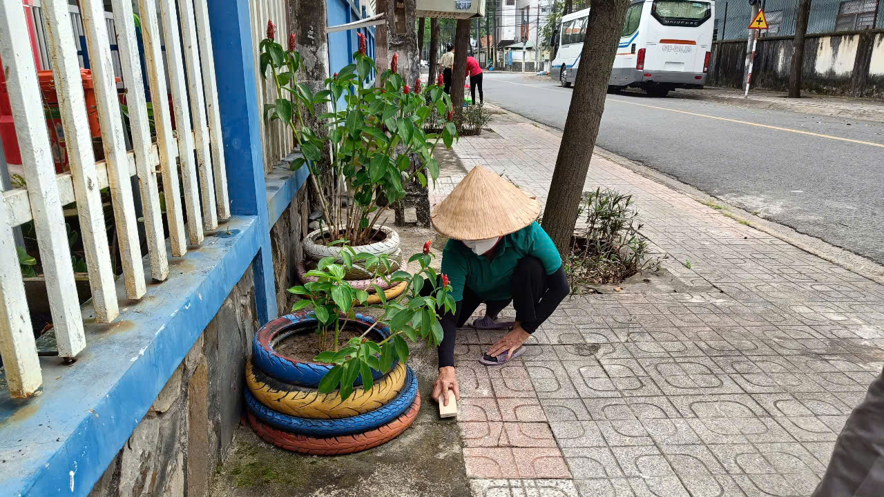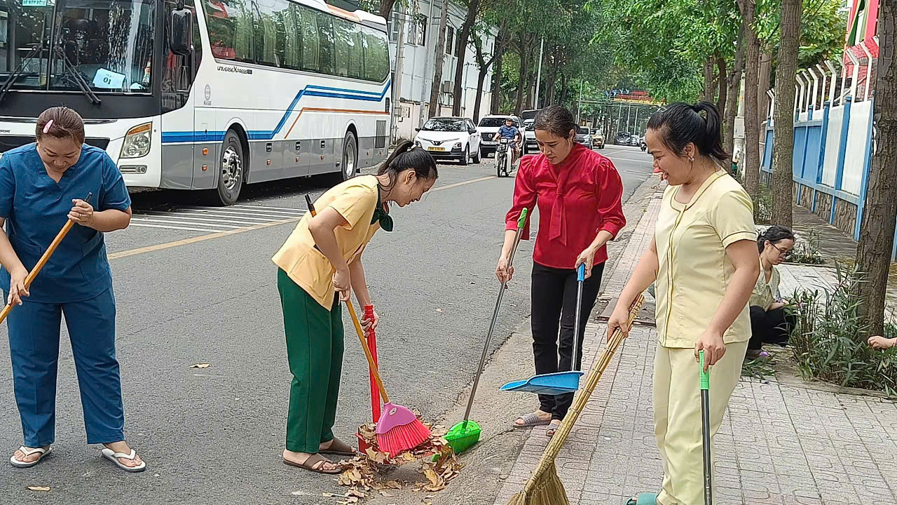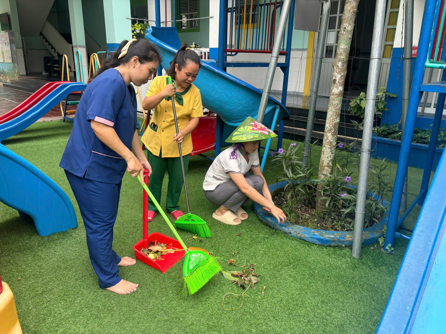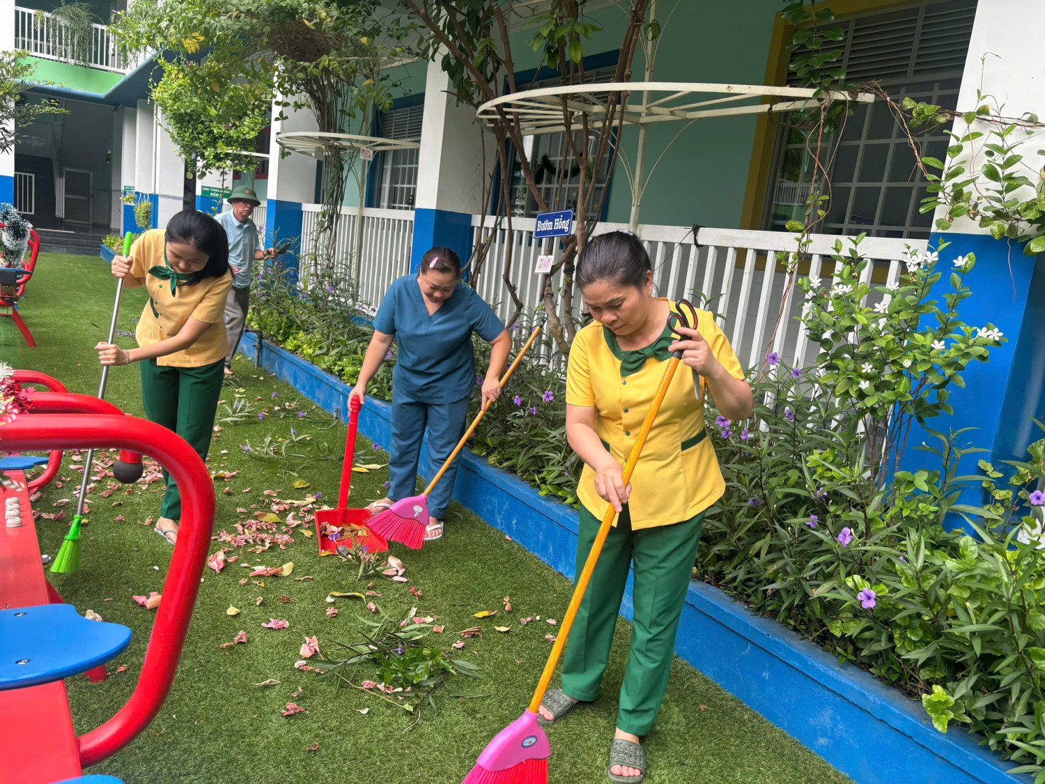 CBGVNV Trường Mầm Non Hoa Phượng tổng vệ sinh trong và ngoài sân trường