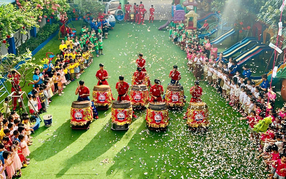🎉🎉 Hôm nay, ngày 27/02/2026 (nhằm ngày 11 tháng Giêng âm lịch). Trường Mầm Non Hoa Phượng hưởng ứng ngày hội Rằm tháng Giêng – hay còn gọi là Tết Nguyên Tiêu – là một trong những ngày lễ quan trọng trong đời sống văn hóa tinh thần của người Việt Nam. ✨ Hòa chung không khí rộn ràng của ngày hội Rằm tháng Giêng, Trường Mầm non Hoa Phượng đã tổ chức hoạt động múa lân sư rồng vô cùng sôi nổi và ý nghĩa dành cho các bé. ✨✨Ngay từ sáng sớm, sân trường đã ngập tràn sắc màu của cờ hoa, đèn lồng và những bộ trang phục rực rỡ. Tiếng trống lân vang lên “tùng… tùng… tùng…” khiến các bé vô cùng thích thú. Những chú lân với màu xanh, đỏ, vàng nổi bật uyển chuyển nhảy múa cùng tiếng reo hò cổ vũ của cô và trò. 🎉🎉Hoạt động múa lân sư rồng không chỉ mang đến niềm vui mà còn giúp các bé hiểu thêm về nét đẹp văn hóa truyền thống của dân tộc trong dịp Rằm tháng Giêng. Bên cạnh đó, các bé còn được tham gia giao lưu, chụp ảnh lưu niệm và nhận những lời chúc may mắn đầu năm từ ông địa, thần tài... Gương mặt bé nào cũng rạng rỡ, háo hức và tràn đầy niềm vui. ☘️ ☘️ Ngày hội múa lân sư rồng tại Trường Mầm non Hoa Phượng đã để lại nhiều ấn tượng đẹp trong lòng cô và trò, góp phần tạo nên một năm mới đầy hứng khởi, an lành và thành công. ✨MỘT SỐ HÌNH ẢNH MÚA LÂN SƯ RỒNG TẠI TRƯỜNG MN HOA PHƯỢNG