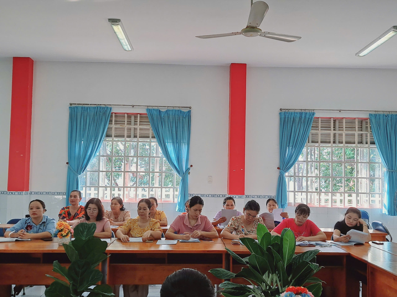 Hình ảnh tập thể CB.GVNV tham dự buổi họp hội đồng sư phạm tháng 9/2025.