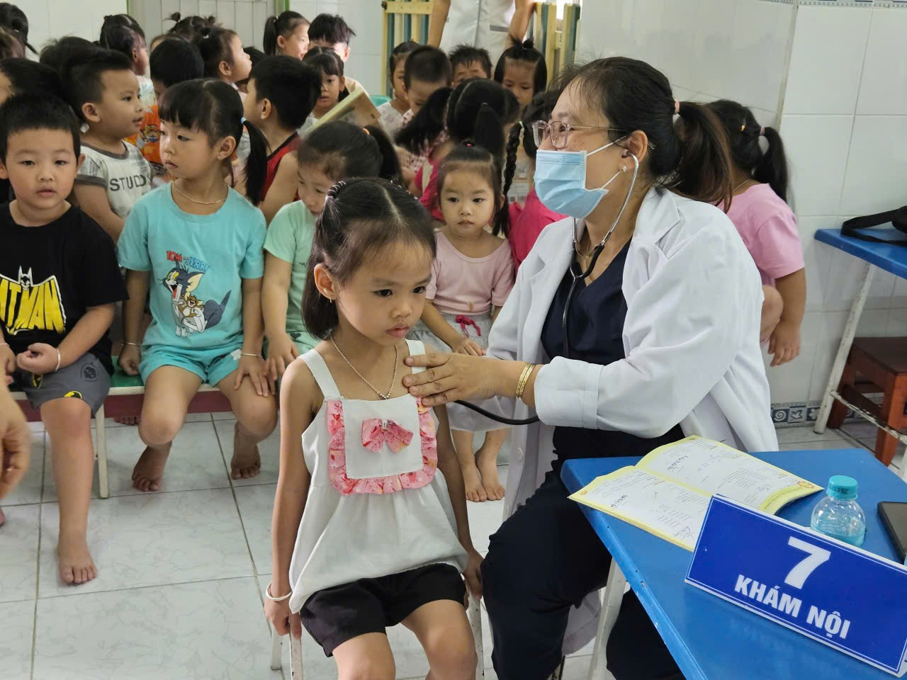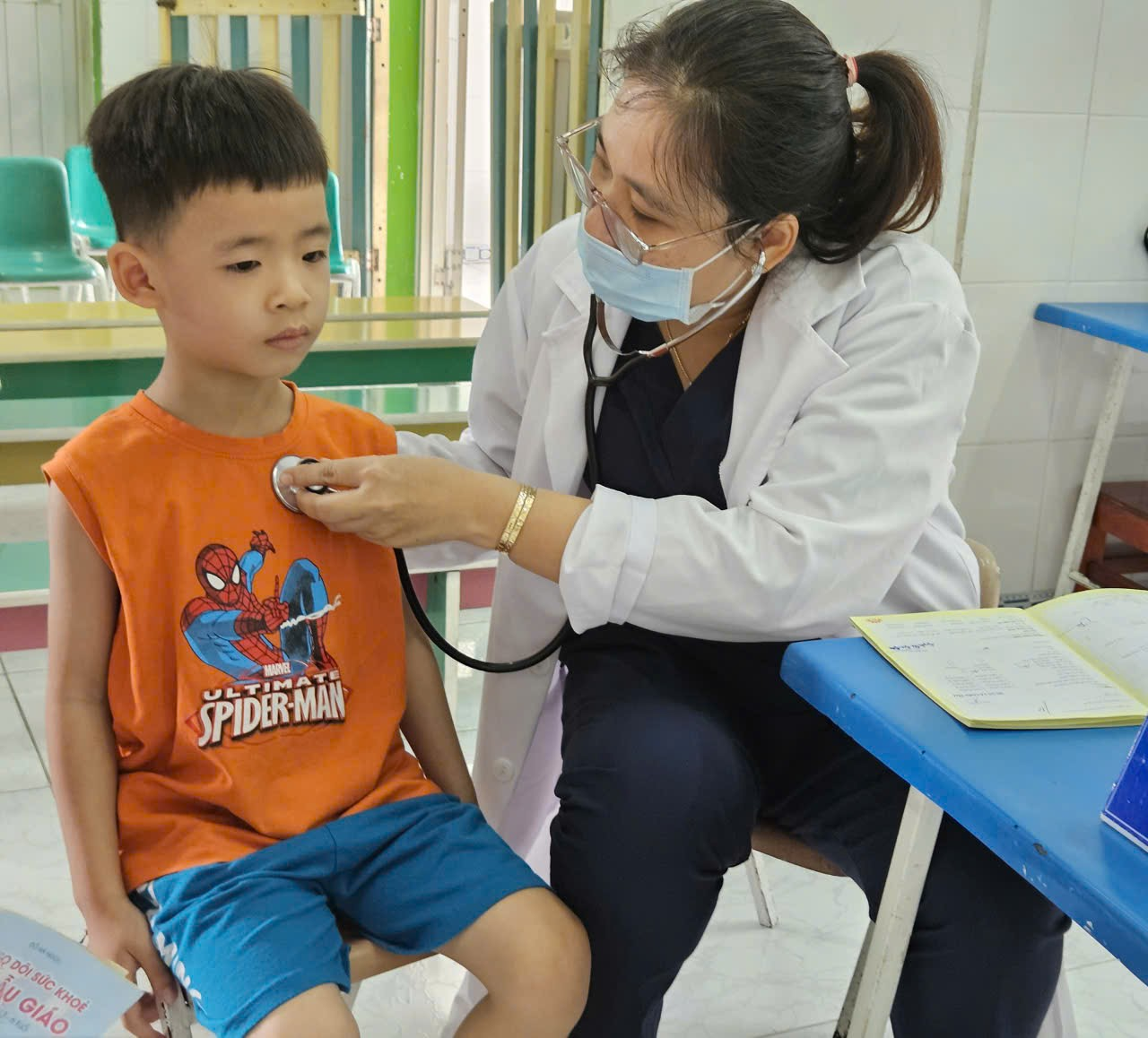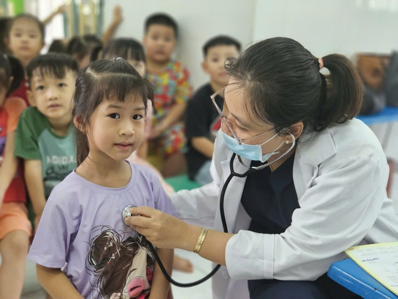 🌈 Đội ngũ bác sĩ và nhân viên y tế đã tiến hành khám tổng quát cho trẻ như: Đo chiều cao, cân nặng, kiểm tra thị lực, thính lực, răng miệng, da liễu, hệ hô hấp – tiêu hóa và sàng lọc một số bệnh thường gặp ở lứa tuổi mầm non. Các kết quả được ghi chép đầy đủ nhằm theo dõi, đánh giá sự phát triển của từng trẻ trong suốt năm học.