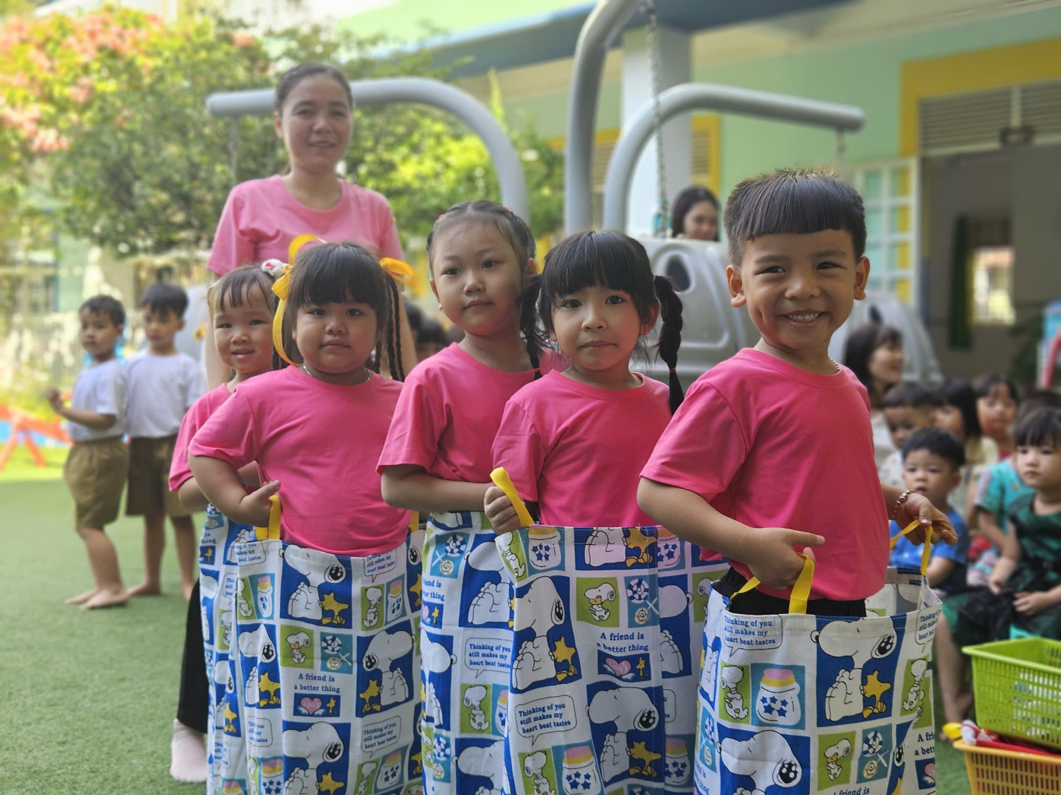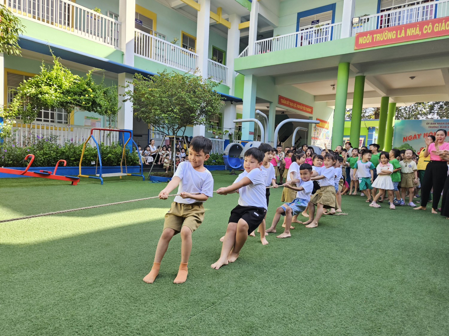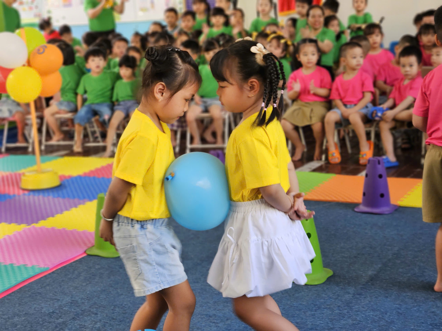 🏃♂️ 🤸♀️ 🏀Ngày hội diễn ra với nhiều trò chơi vận động phù hợp lứa tuổi như: Chuyền bóng tiếp sức, ném bóng vào sọt, nhảy bao bố, kéo co… Các bé tham gia hào hứng, tự tin, thể hiện tinh thần đoàn kết – khéo léo – nhanh nhẹn, đồng thời rèn luyện sức khỏe và kỹ năng vận động.