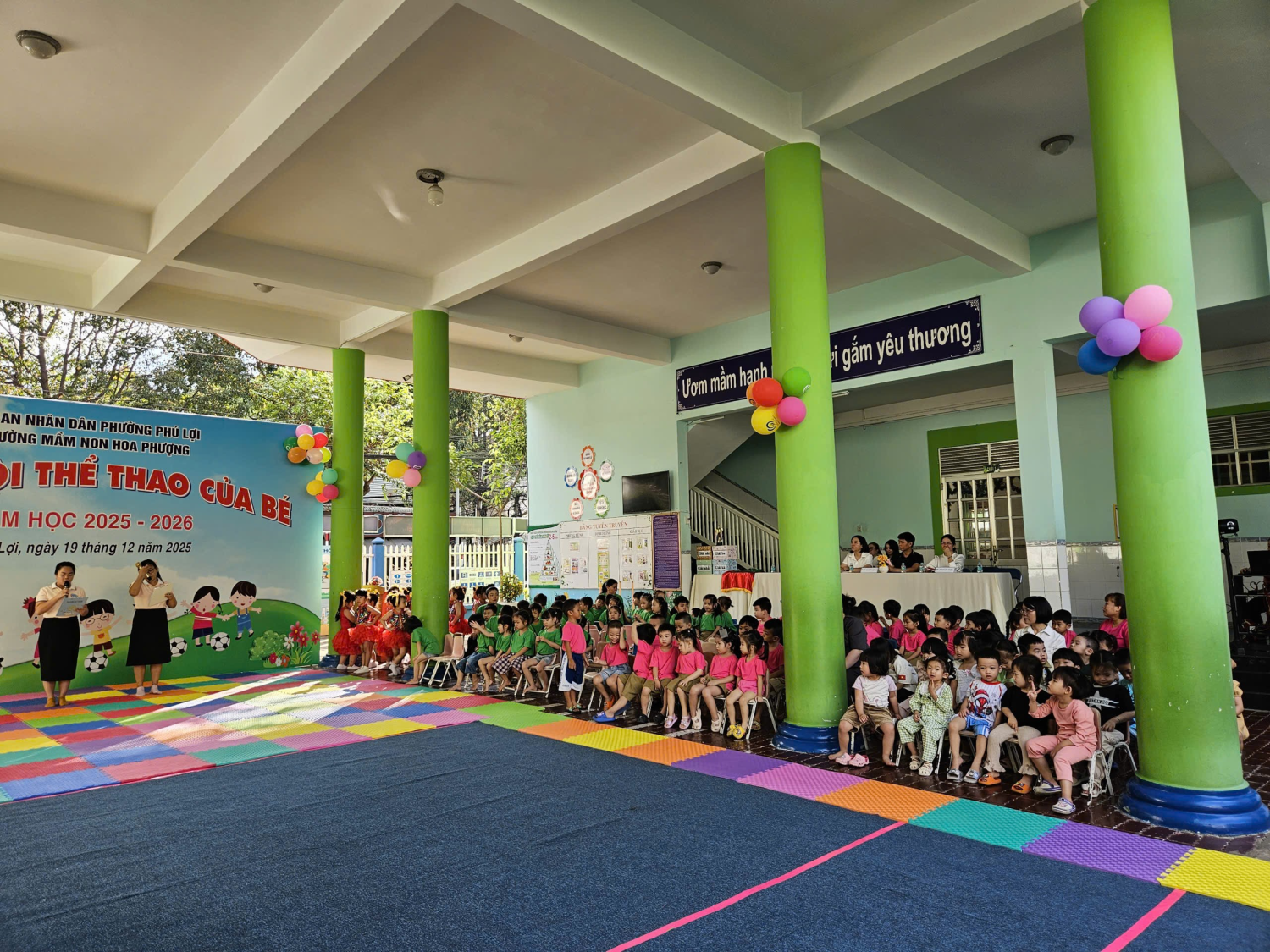 🌈 🌈Trong không khí hào hùng của cả nước hướng về kỷ niệm 81 năm Ngày thành lập Quân đội Nhân dân Việt Nam 22/12/1944 – 22/12/2025, những chiến công oanh liệt, những trang sử vàng chói lọi của quân đội anh hùng đã trở thành niềm tự hào to lớn và là động lực để mỗi chúng ta tiếp tục phát huy truyền thống yêu nước, tinh thần đoàn kết và ý chí vượt khó của dân tộc. Hôm nay, ngày 19/12/2025, trường Mầm non Hoa Phượng long trọng tổ chức “Ngày hội Thể dục Thể thao của Bé” lần thứ nhất nhằm hưởng ứng phong trào thi đua sôi nổi, giáo dục tinh thần rèn luyện sức khỏe theo lời dạy của Bác Hồ kính yêu: “Khỏe để xây dựng và bảo vệ Tổ quốc.”