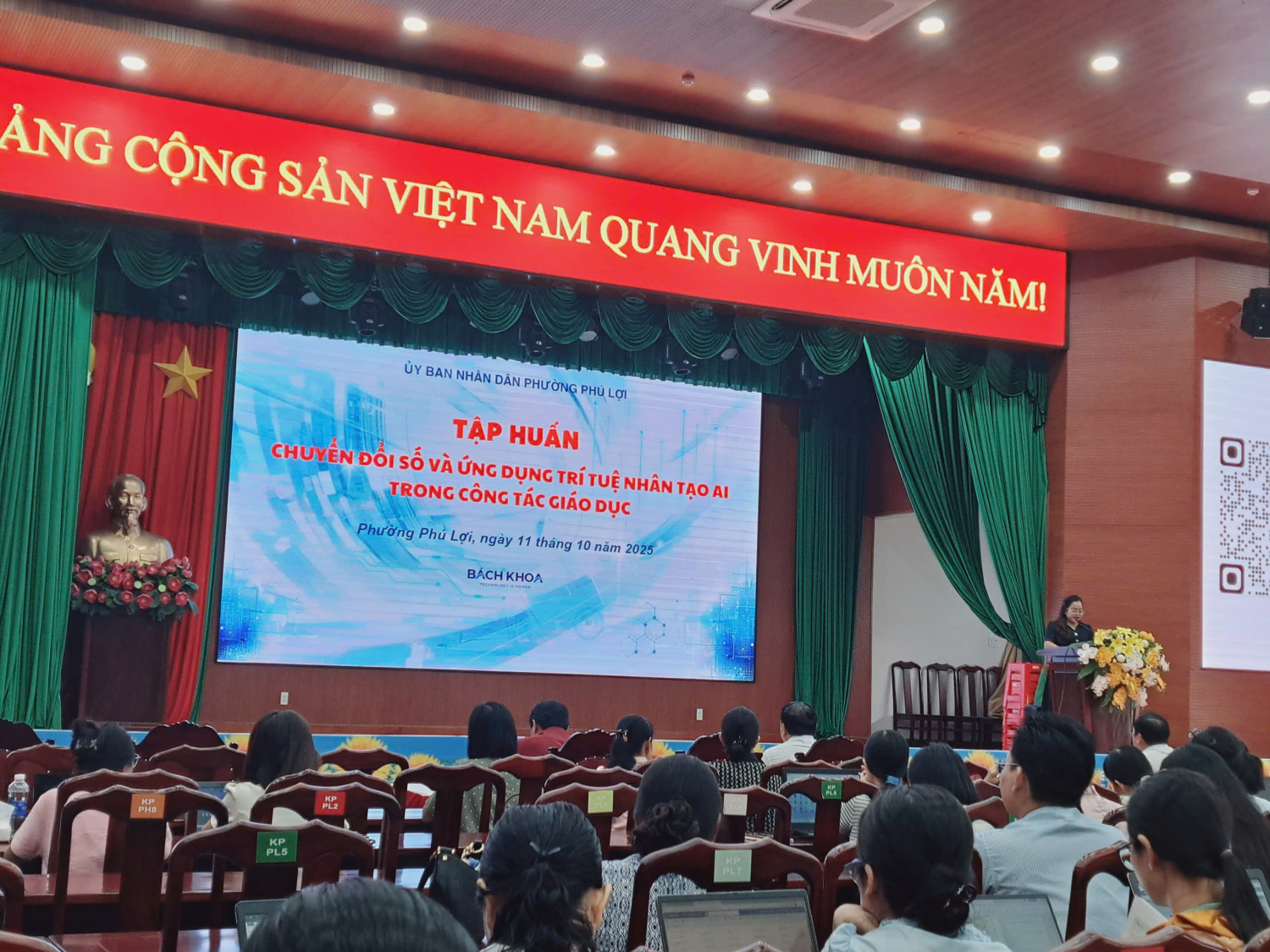 Ngày 11/10/2025 Trường Mầm Non Hoa Phượng tham gia lớp tập huấn chuyển đổi số và ứng dụng trí tuệ AI trong công tác giáo dục do Uỷ ban nhân dân phường Phú Lợi tổ chức.